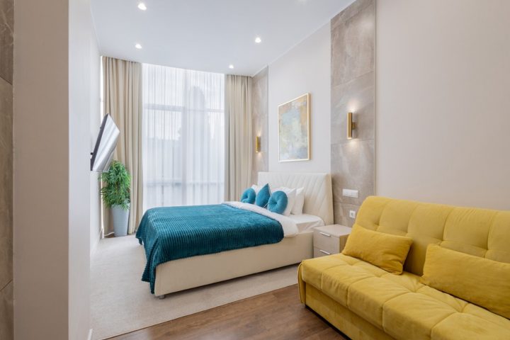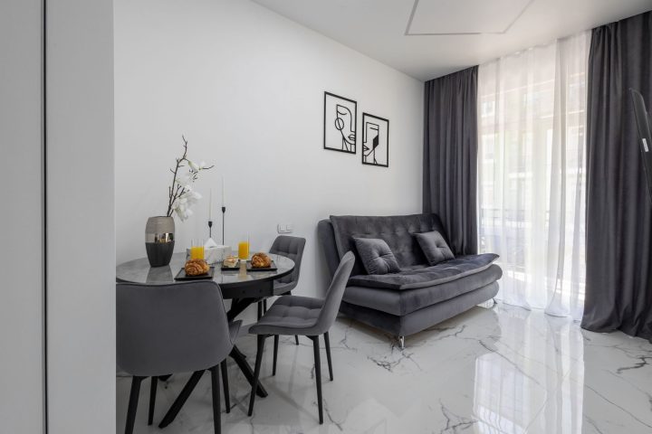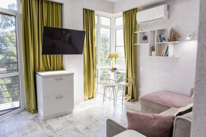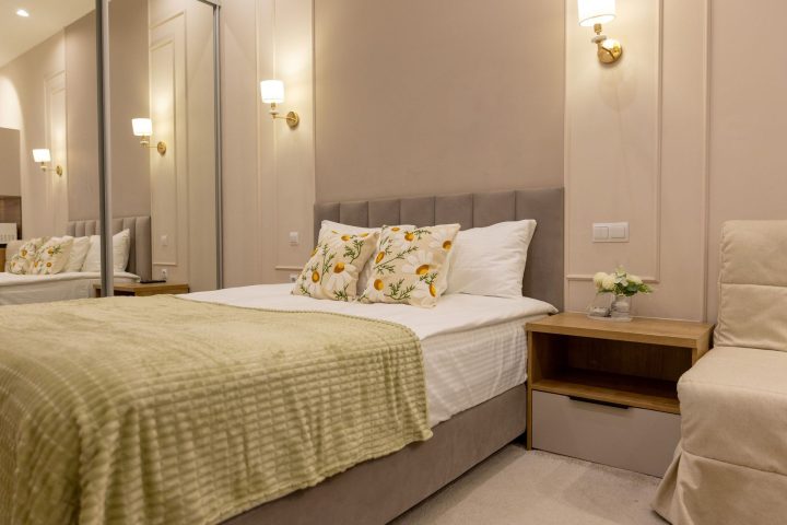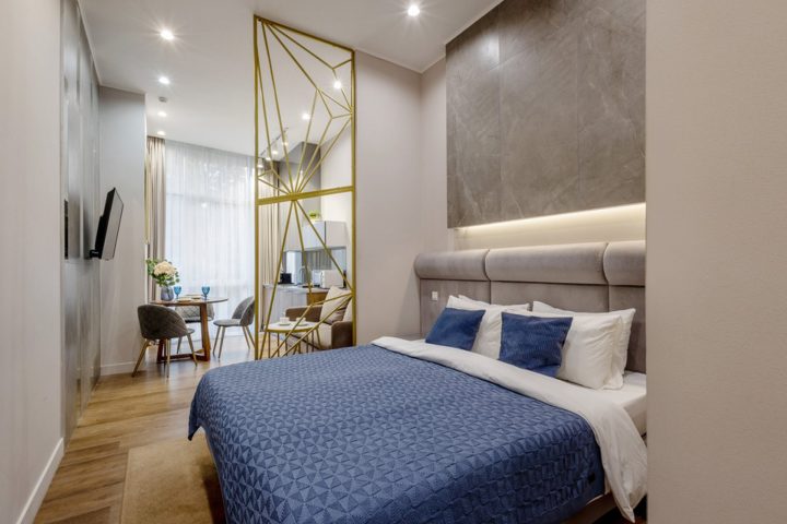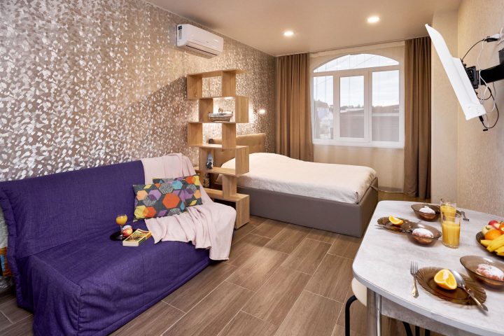 В апартаментах предусмотрено все самое необходимое как для длительного проживания, так и на короткий срок. Вы можете снять апартаменты площадью от 20 кв.м до 76 кв.м – студию с кухонной зоной или апартаменты с одной, двумя спальнями. В каждом из апартаментов гостей ожидает современный интерьер, где каждая деталь продумана с заботой о вашем отдыхе или деловой поезде, а также бесплатный доступ Wi-Fi в Интернет.