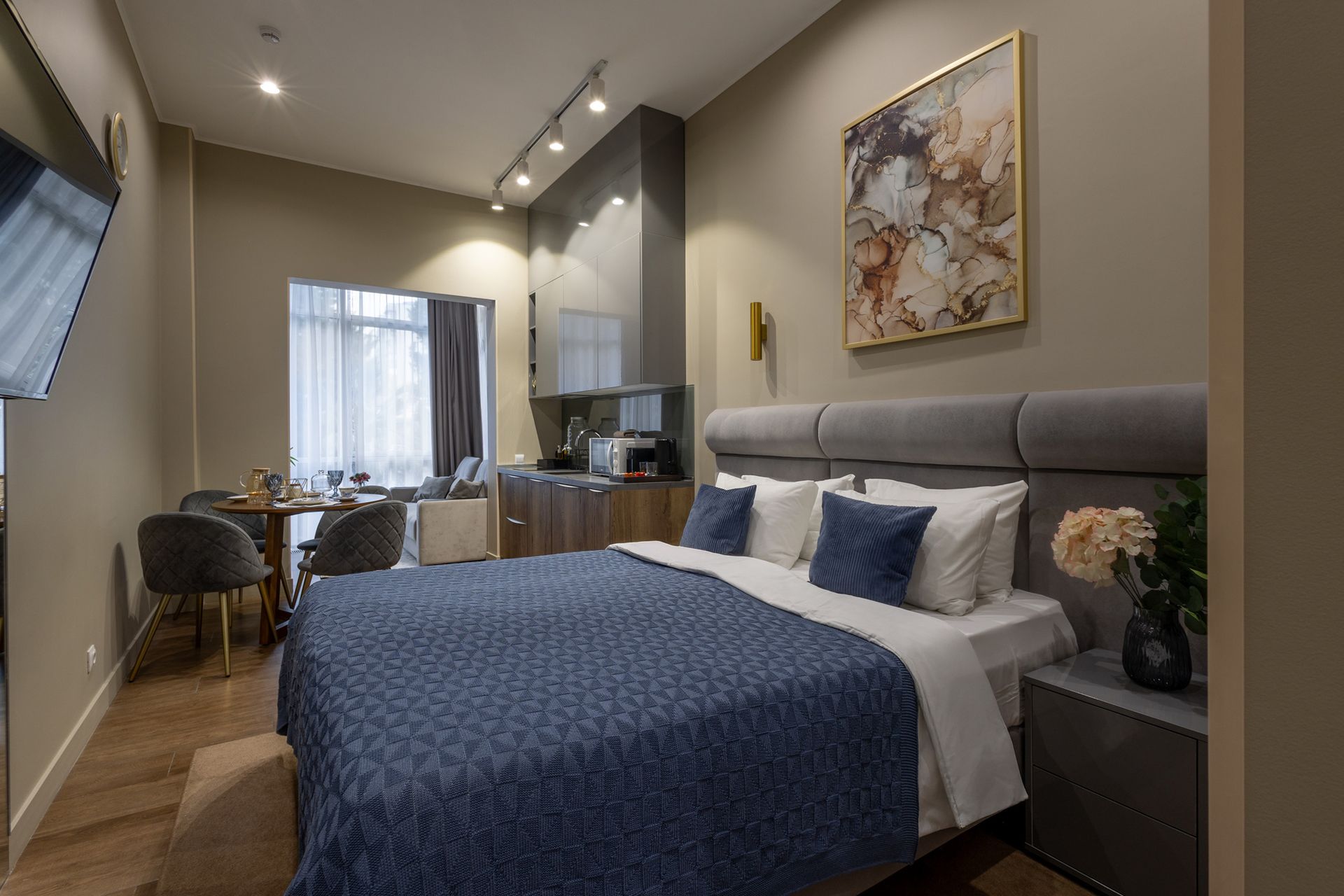 Солнечные апараменты в самом сердце Сочи на ул. Навагинская с видом на главный променад😍оснащены всем необходимым для комфортного пребывания. В апартаментах удобная двуспальная кровать а также, есть раскладной диван, как дополнительное место. Имеется всегда чистое и свежее постельное белье, мягкие махровые халаты и полотенца. Для любителей готовить есть оборудованная кухня с необходимой посудой и принадлежностями. Также, есть телевизор и WiFi.