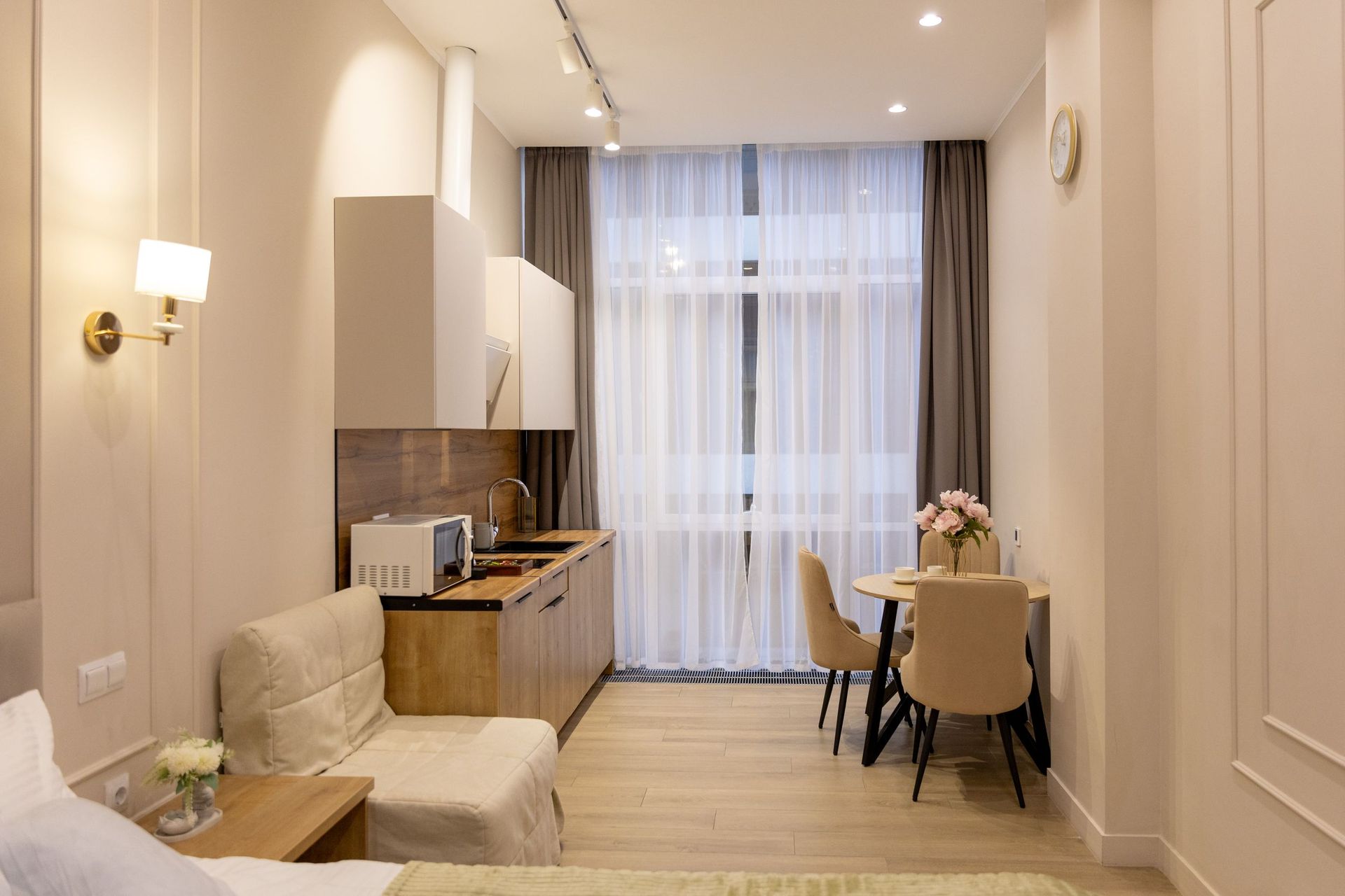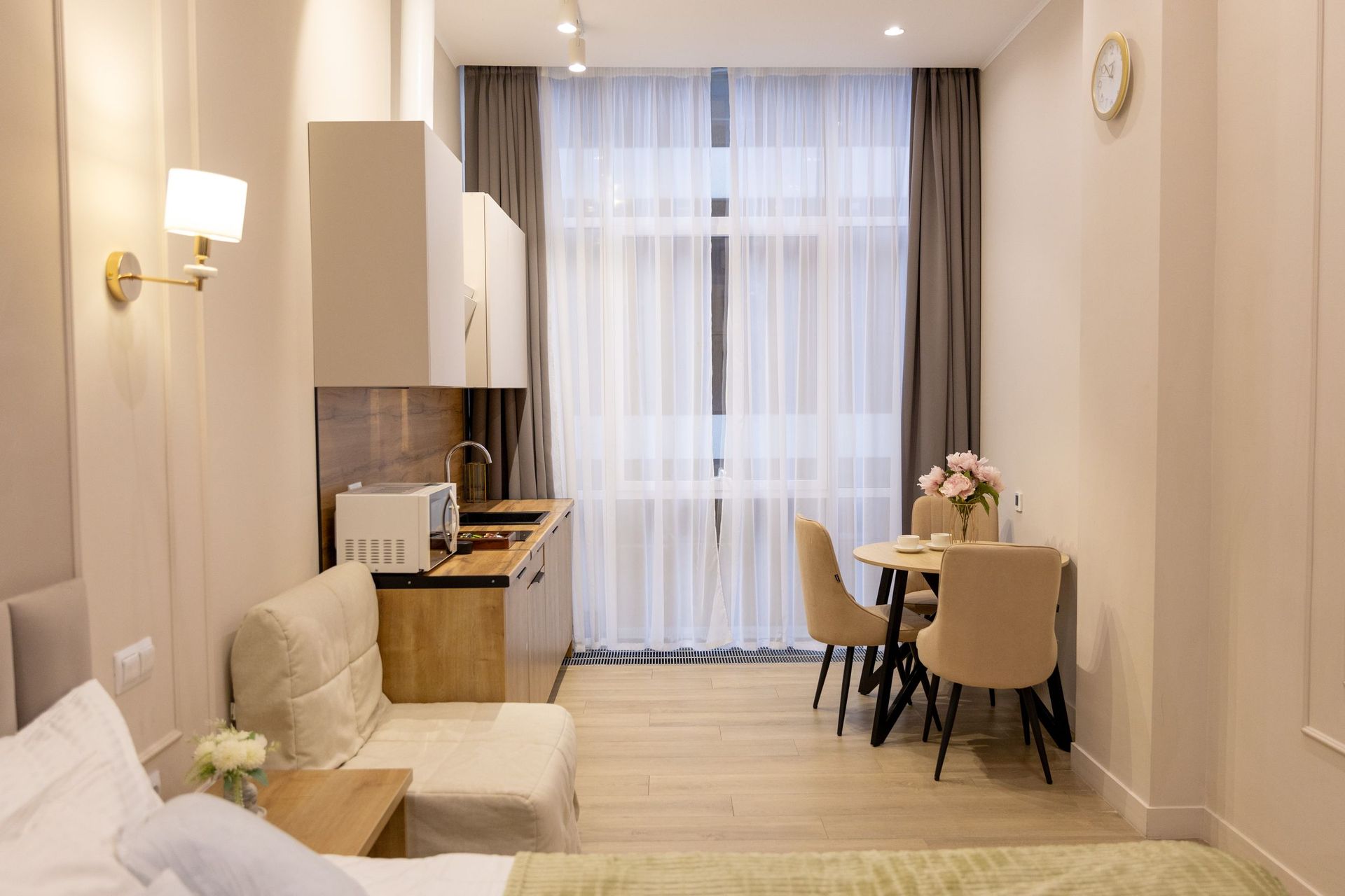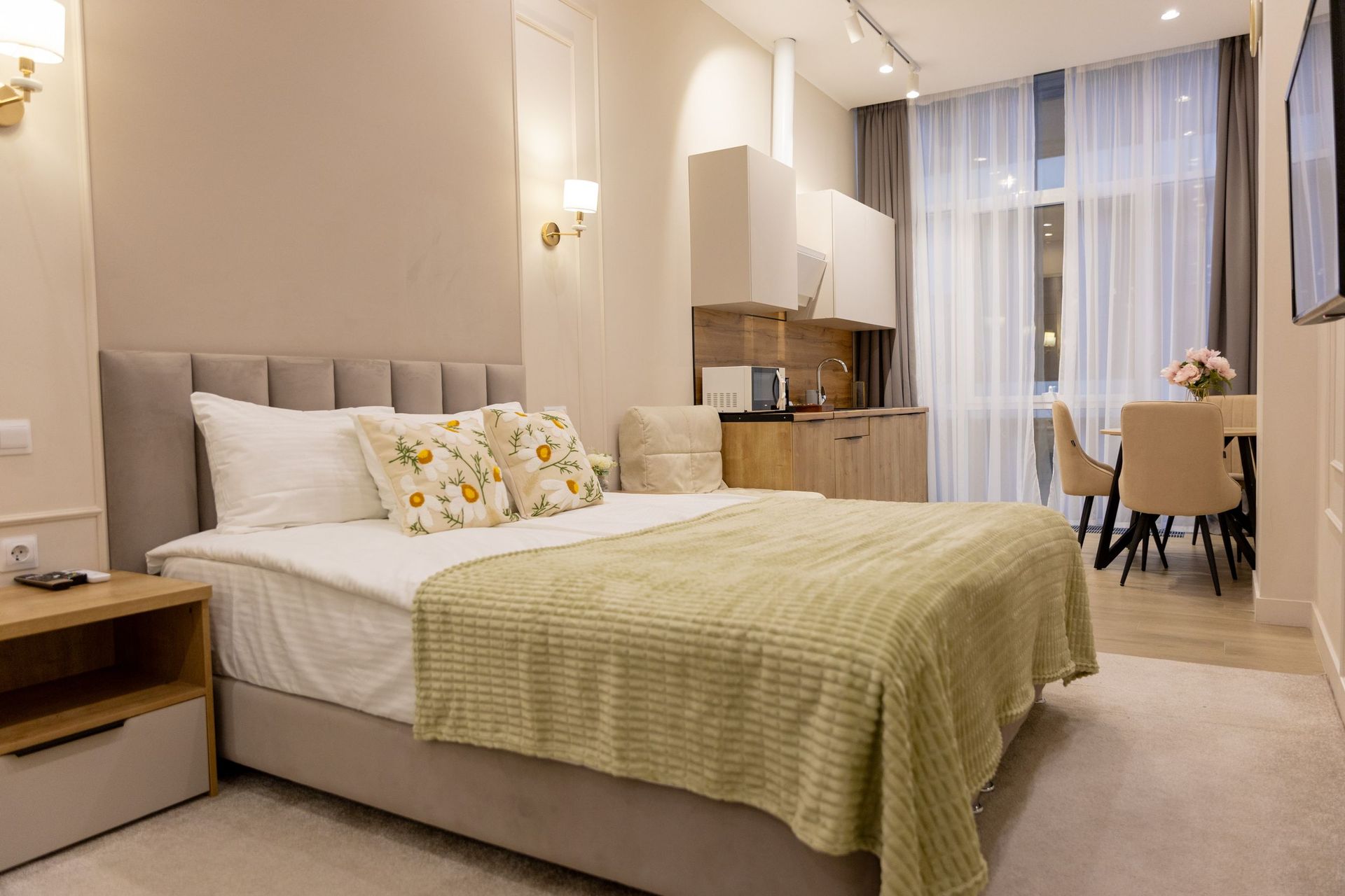 Апартаменты Mirror в самом сердце Сочи на ул. Навагинская 😍оснащены всем необходимым для комфортного пребывания. В апартаментах удобная двуспальная кровать а также, есть раскладноe кресло, как дополнительное место. Имеется всегда чистое и свежее постельное белье, мягкие махровые халаты и полотенца. Для любителей готовить есть оборудованная кухня с необходимой посудой и принадлежностями. Также, есть телевизор и WiFi.