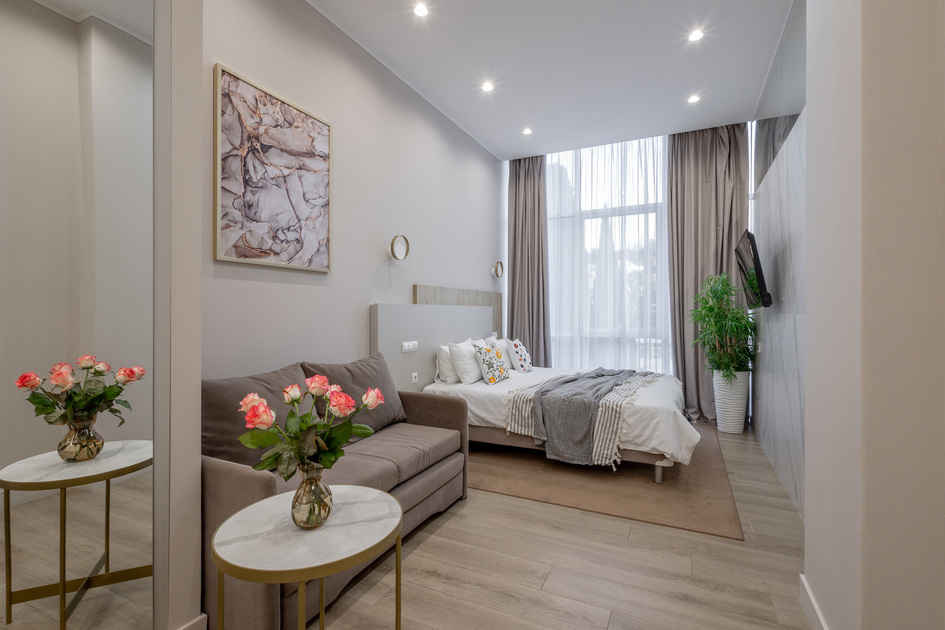 Апартаменты в самом сердце Сочи на ул. Навагинская с видом на променад😍оснащены всем необходимым для комфортного пребывания. В апартаментах удобная двуспальная кровать а также, есть раскладной диван, как дополнительное место. Имеется всегда чистое и свежее постельное белье, мягкие махровые халаты и полотенца. Для любителей готовить есть оборудованная кухня с необходимой посудой и принадлежностями. Также, есть телевизор и WiFi.