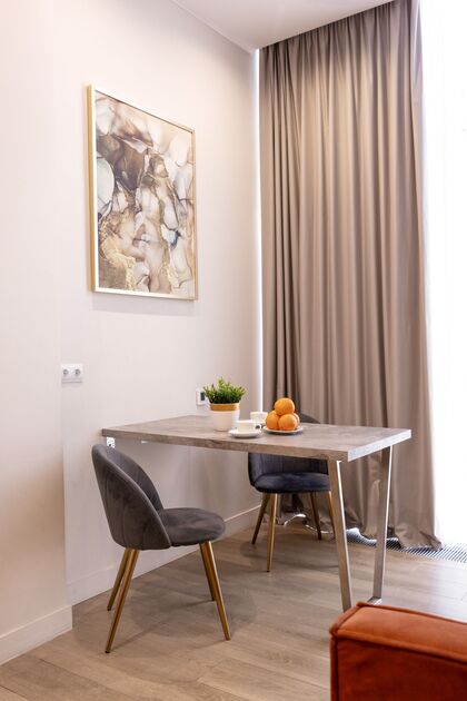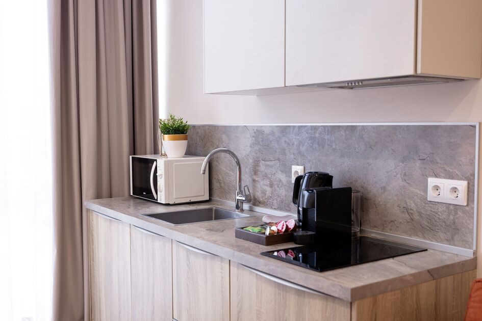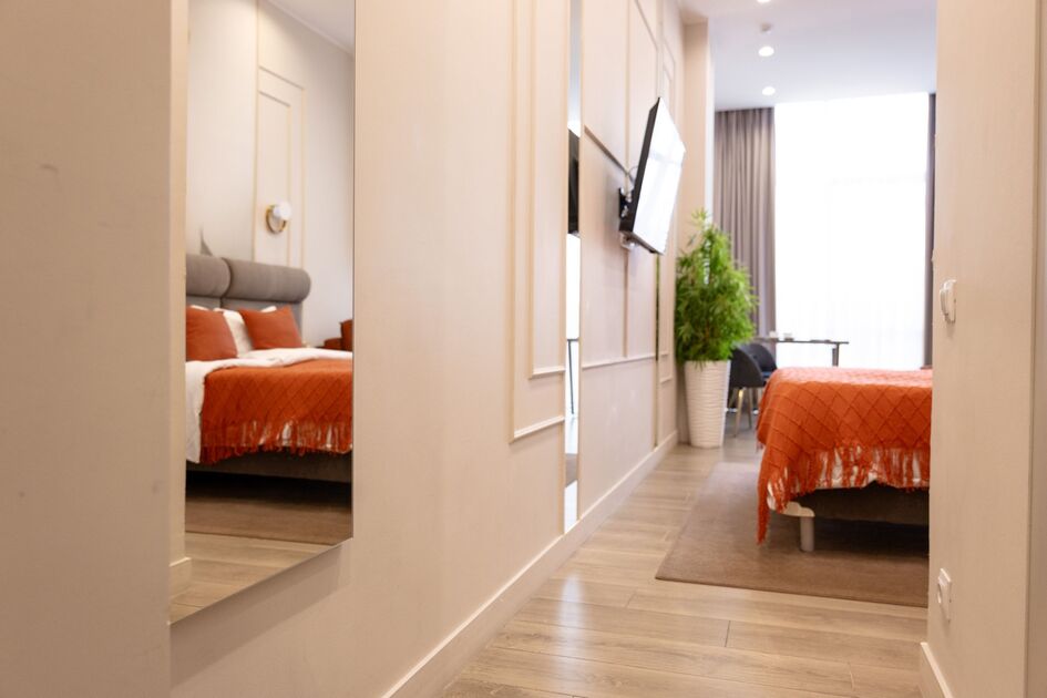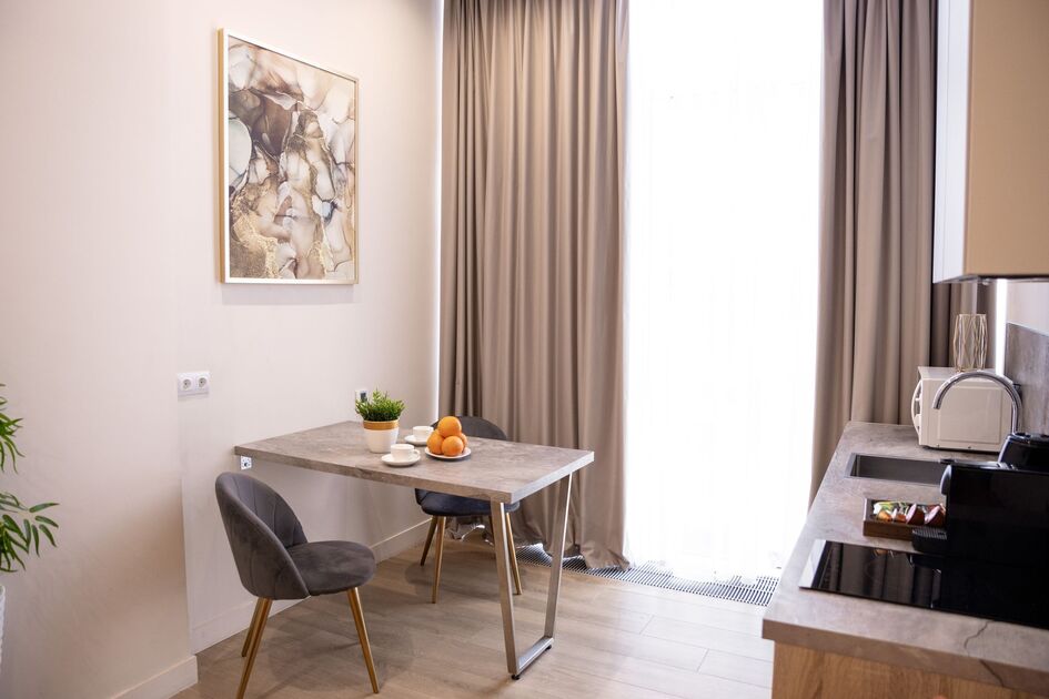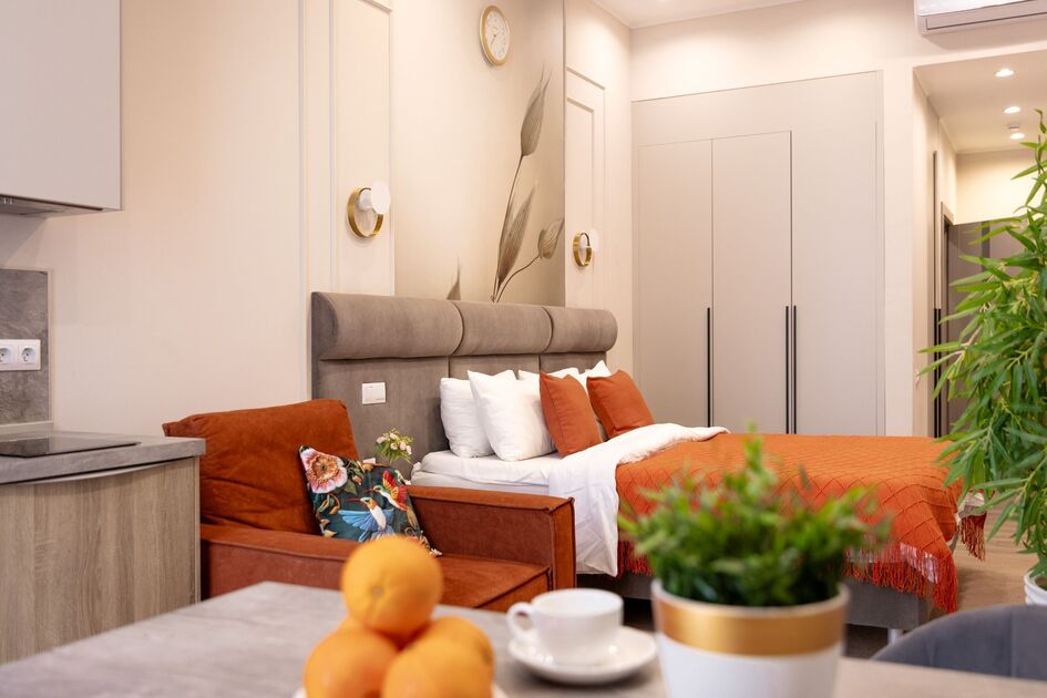 Апартаменты в самом сердце Сочи на ул. Навагинская оснащены всем необходимым для комфортного пребывания. В апартаментах удобная двуспальная кровать а также, есть раскладное кресло, как дополнительное место. Имеется всегда чистое и свежее постельное белье, мягкие махровые халаты и полотенца. Для любителей готовить есть оборудованная кухня с необходимой посудой и принадлежностями. Также, есть телевизор и WiFi.