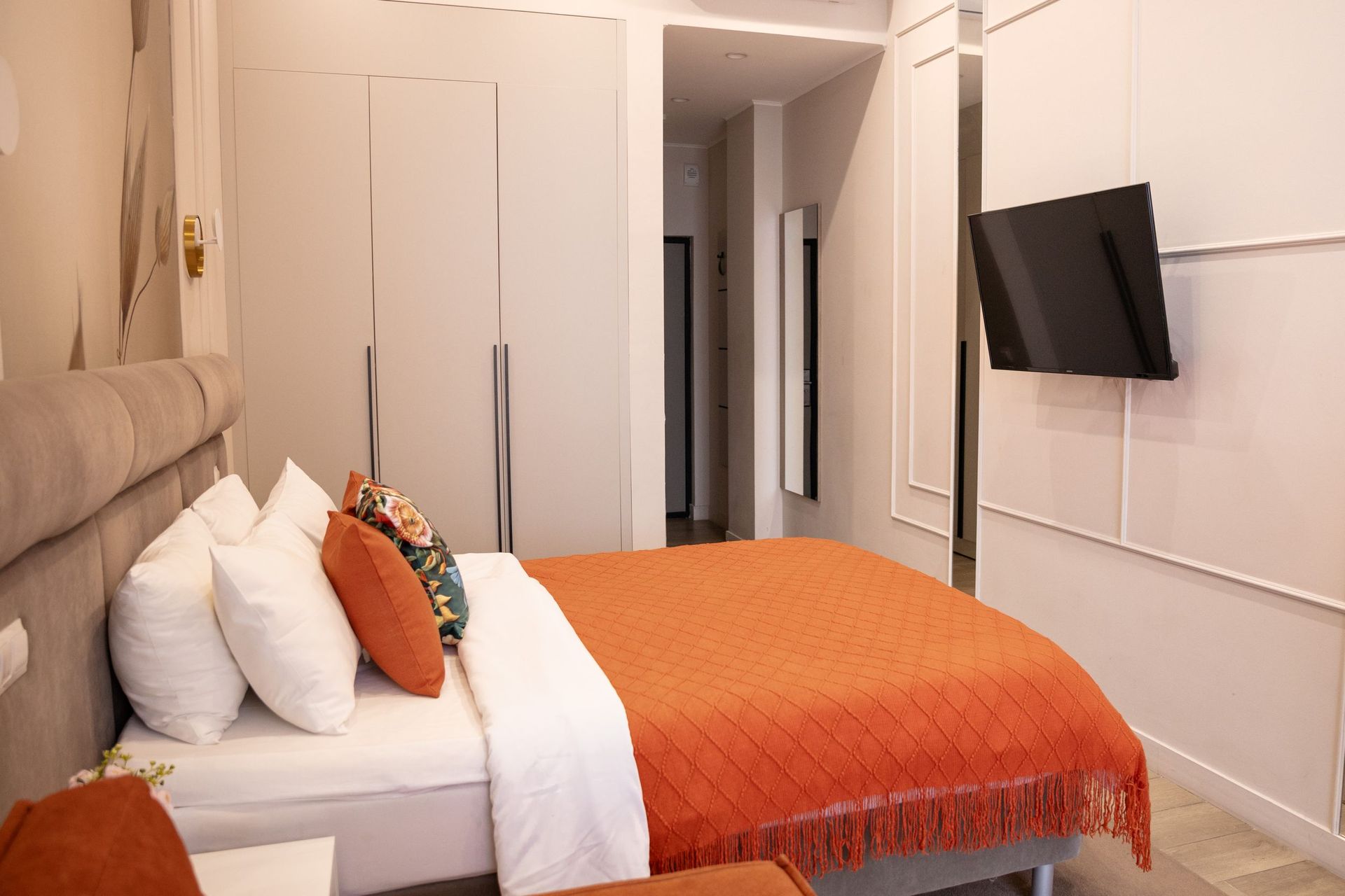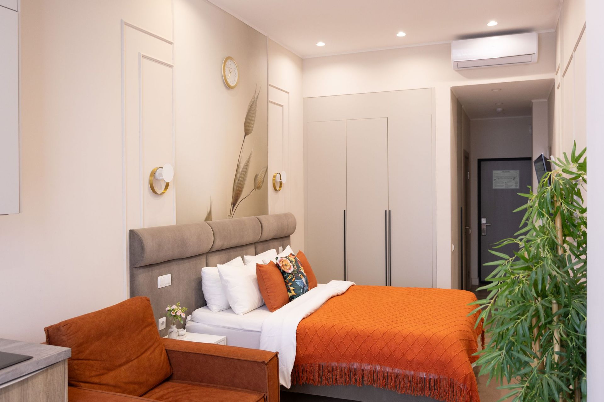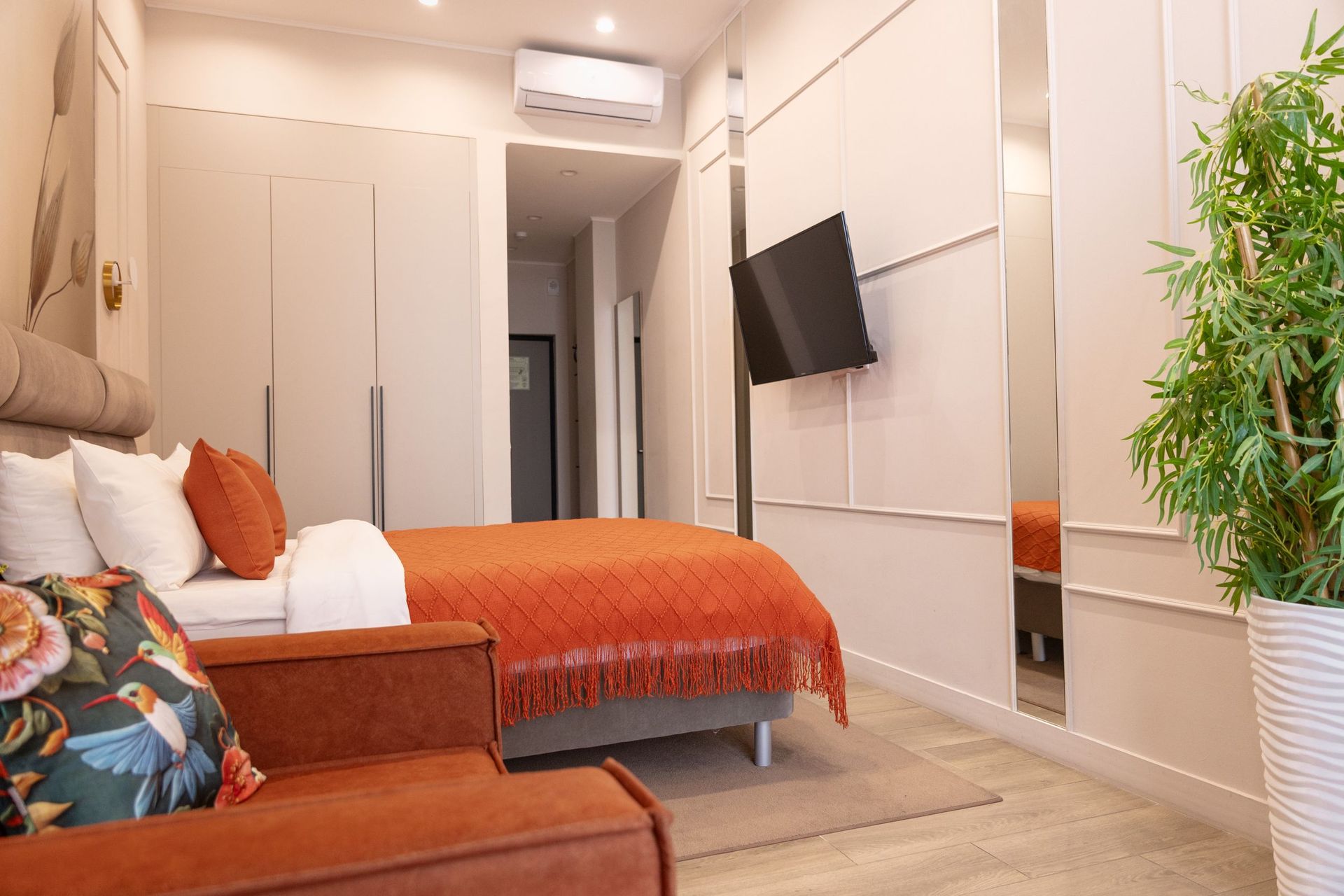 Апартаменты в самом сердце Сочи на ул. Навагинская оснащены всем необходимым для комфортного пребывания. В апартаментах удобная двуспальная кровать а также, есть раскладное кресло, как дополнительное место. Имеется всегда чистое и свежее постельное белье, мягкие махровые халаты и полотенца. Для любителей готовить есть оборудованная кухня с необходимой посудой и принадлежностями. Также, есть телевизор и WiFi.
