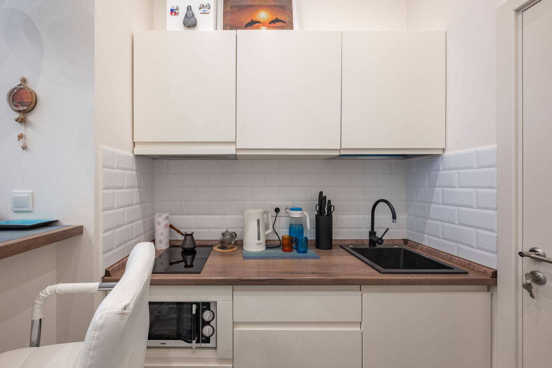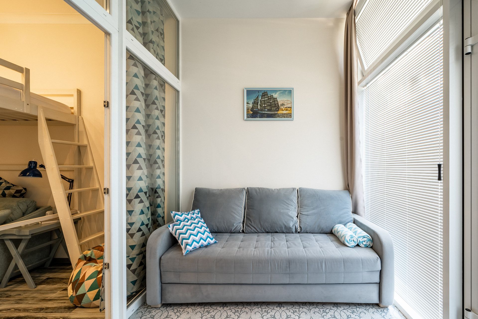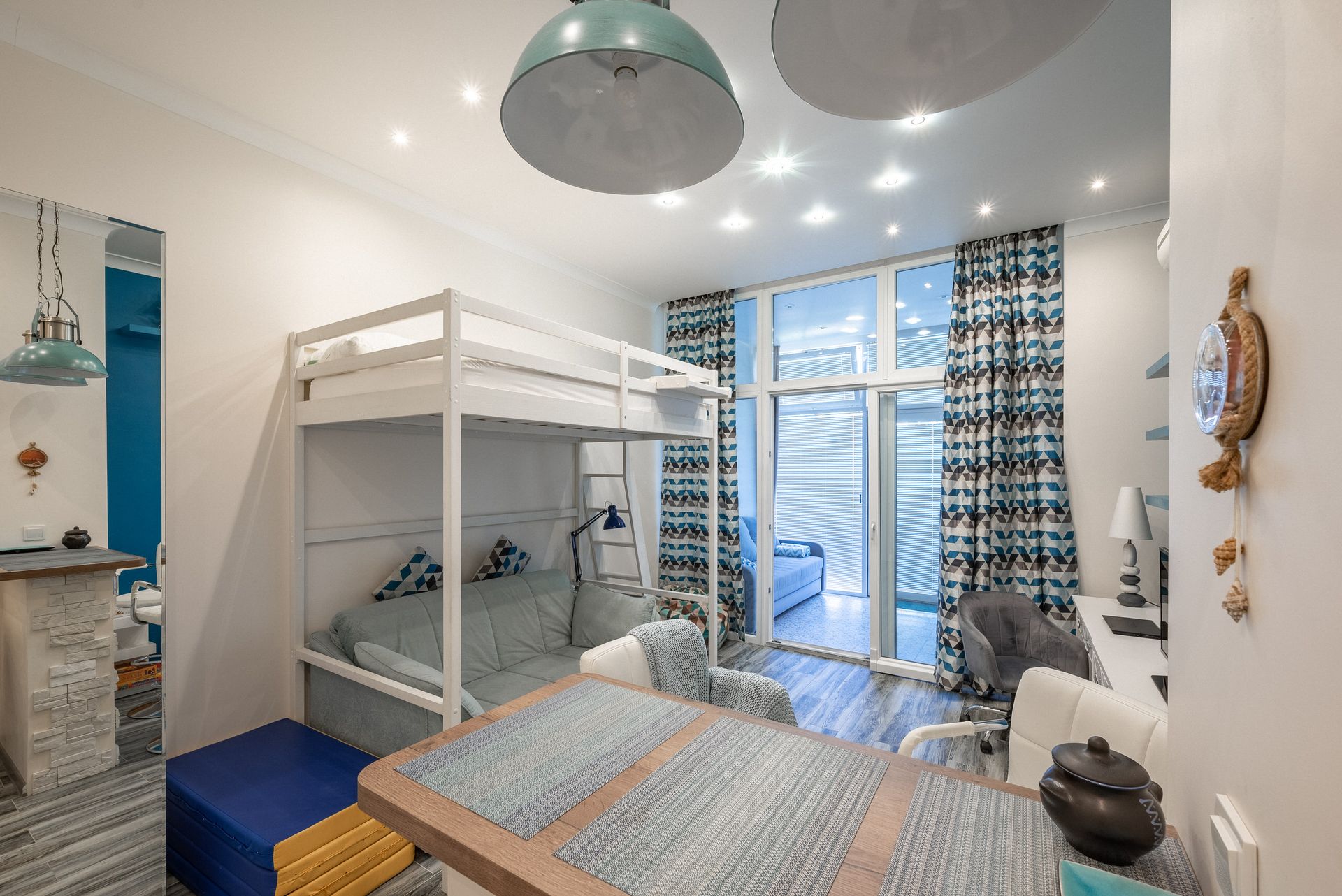 Стильная и уютная квартира на берегу Чёрного моря. С собственным входом. До моря и пляжей пешком 3 минуты. В квартире комфортно могут разместиться до 5 гостей. Удобные раскладные диваны, кровать 120*200 вторым ярусом. Расположена на территории города-отеля «Бархатные сезоны». Закрытая охраняемая территория комплекса и бесплатная парковка для гостей. Множество кафе, столовых, ресторанов, детских площадок вокруг.