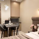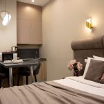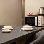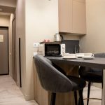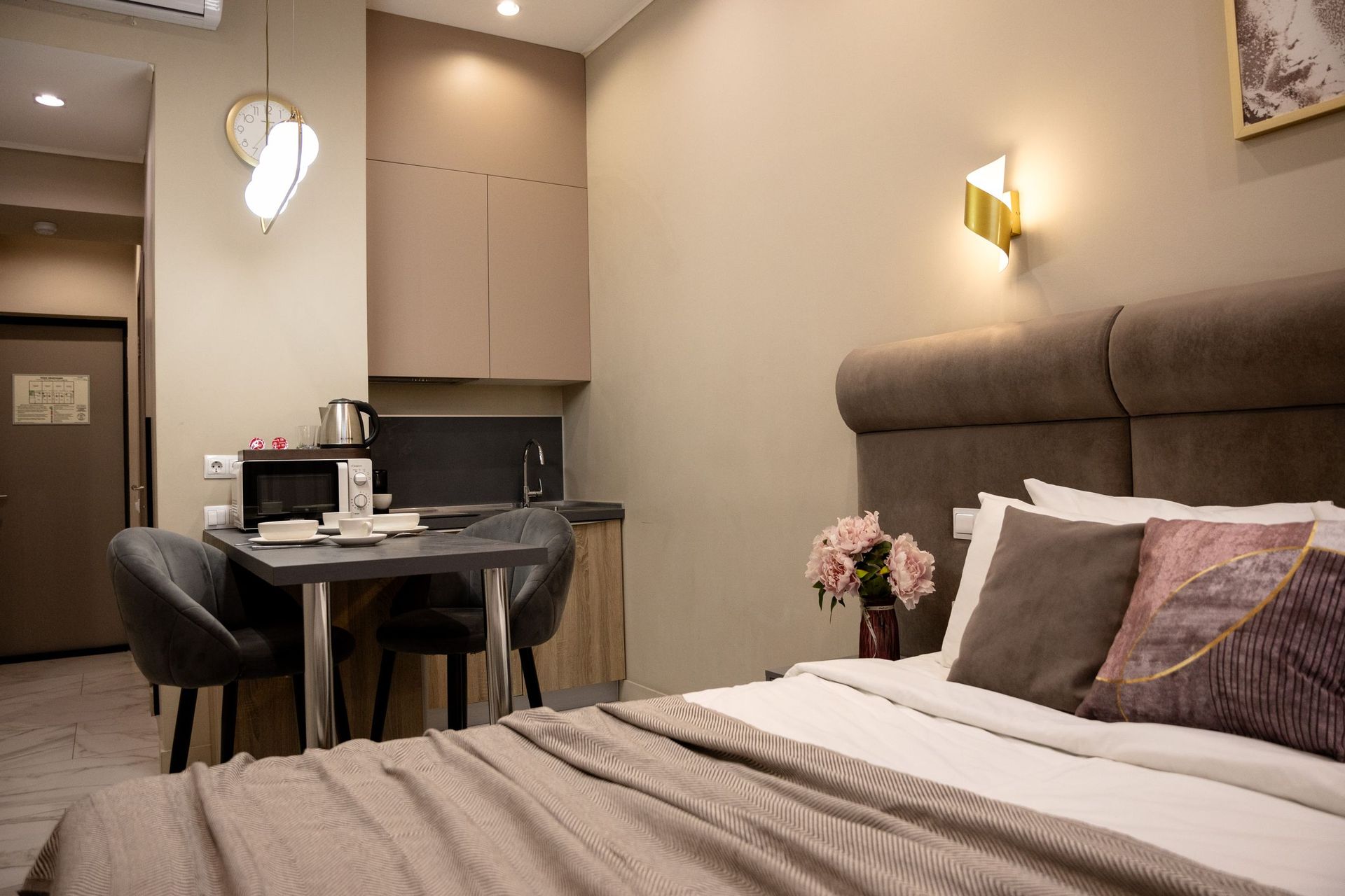Апартаменты двухместные в самом сердце Сочи на ул. Навагинская, оснащены всем необходимым для комфортного пребывания. В апартаментах удобная двуспальная кровать. Имеется всегда чистое и свежее постельное белье, мягкие махровые халаты и полотенца. Для любителей готовить есть оборудованная кухня с необходимой посудой и принадлежностями. Также, есть телевизор и WiFi.