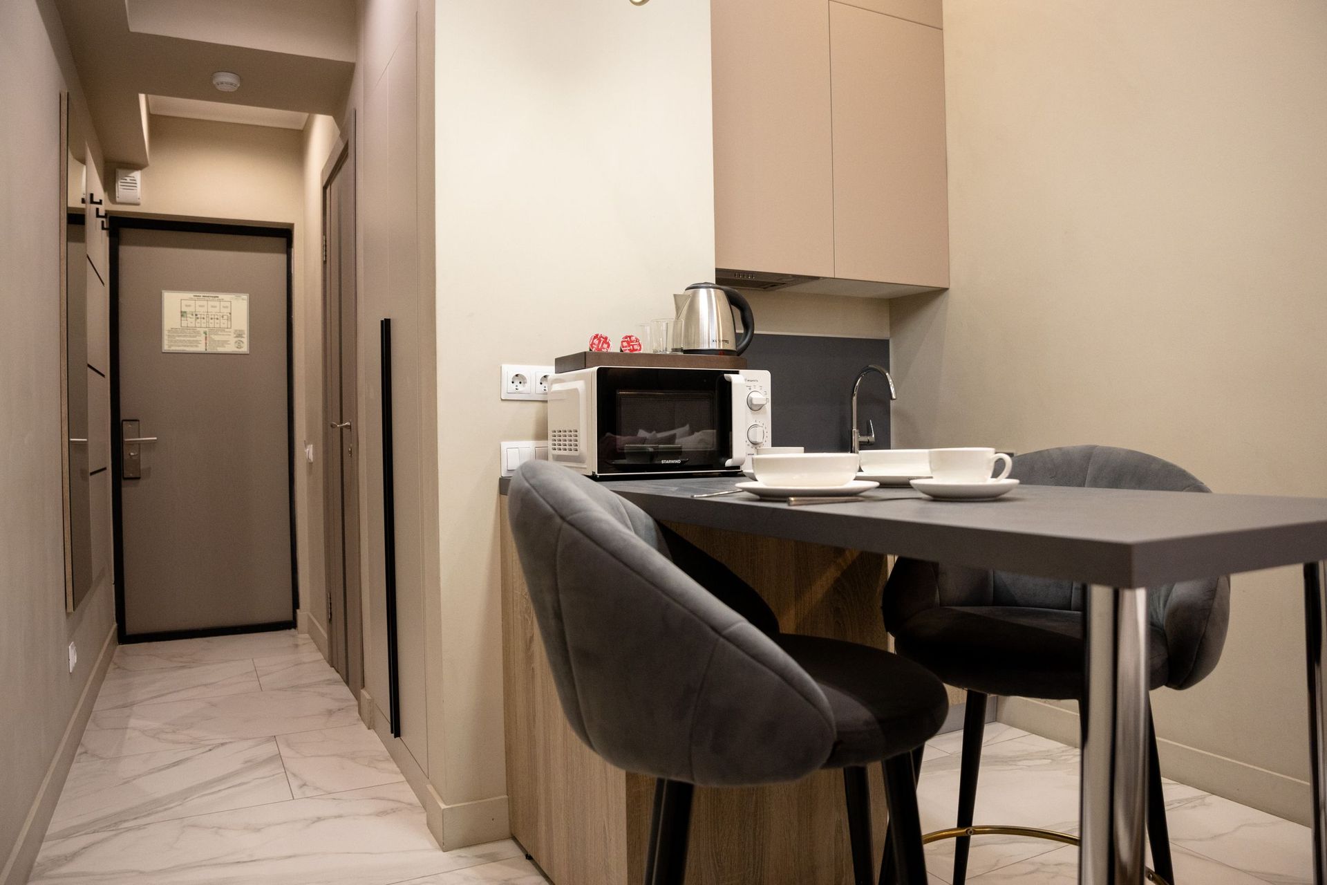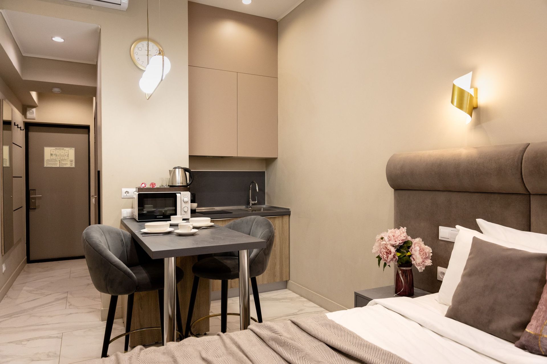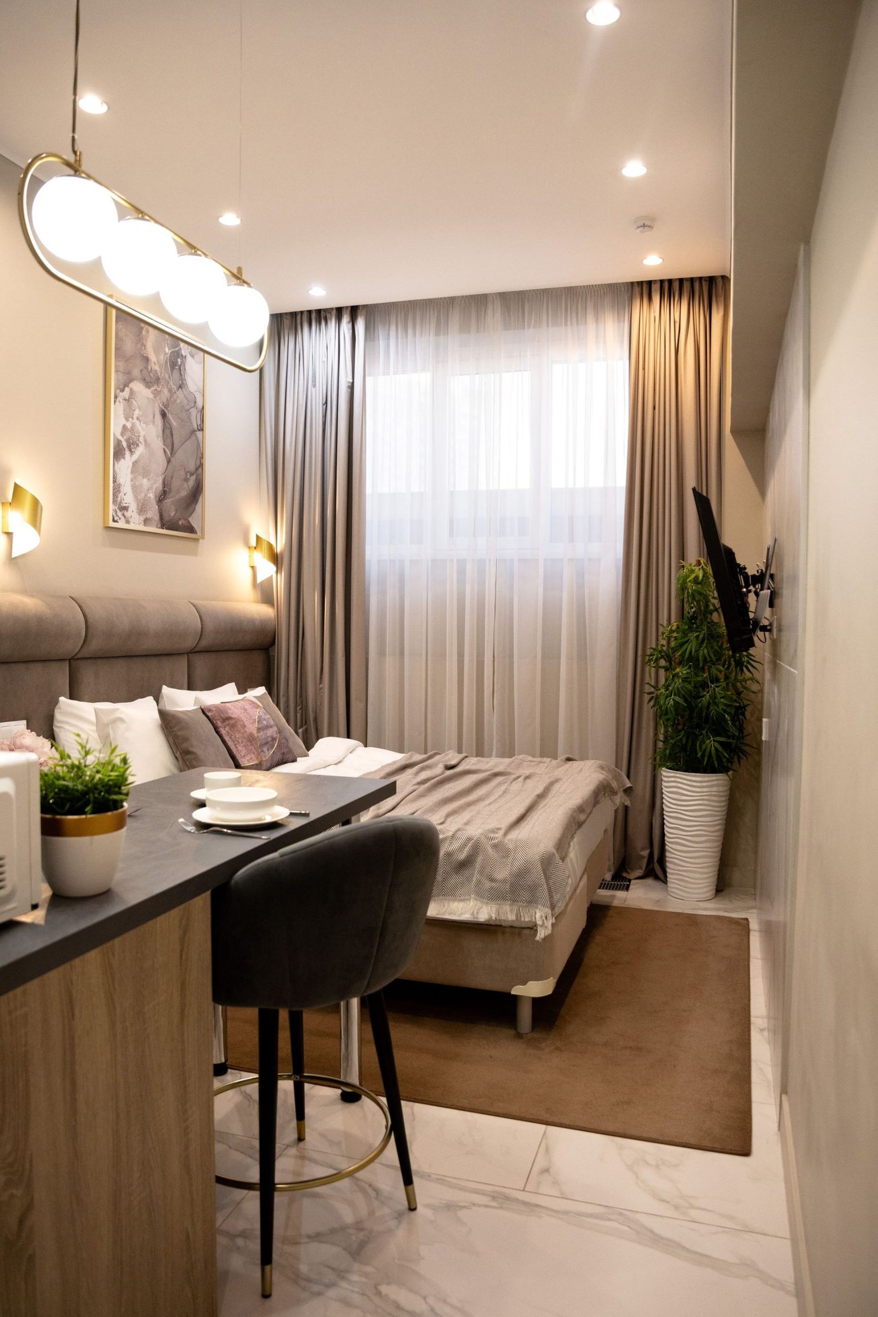 Апартаменты двухместные в самом сердце Сочи на ул. Навагинская, оснащены всем необходимым для комфортного пребывания. В апартаментах удобная двуспальная кровать. Имеется всегда чистое и свежее постельное белье, мягкие махровые халаты и полотенца. Для любителей готовить есть оборудованная кухня с необходимой посудой и принадлежностями. Также, есть телевизор и WiFi.