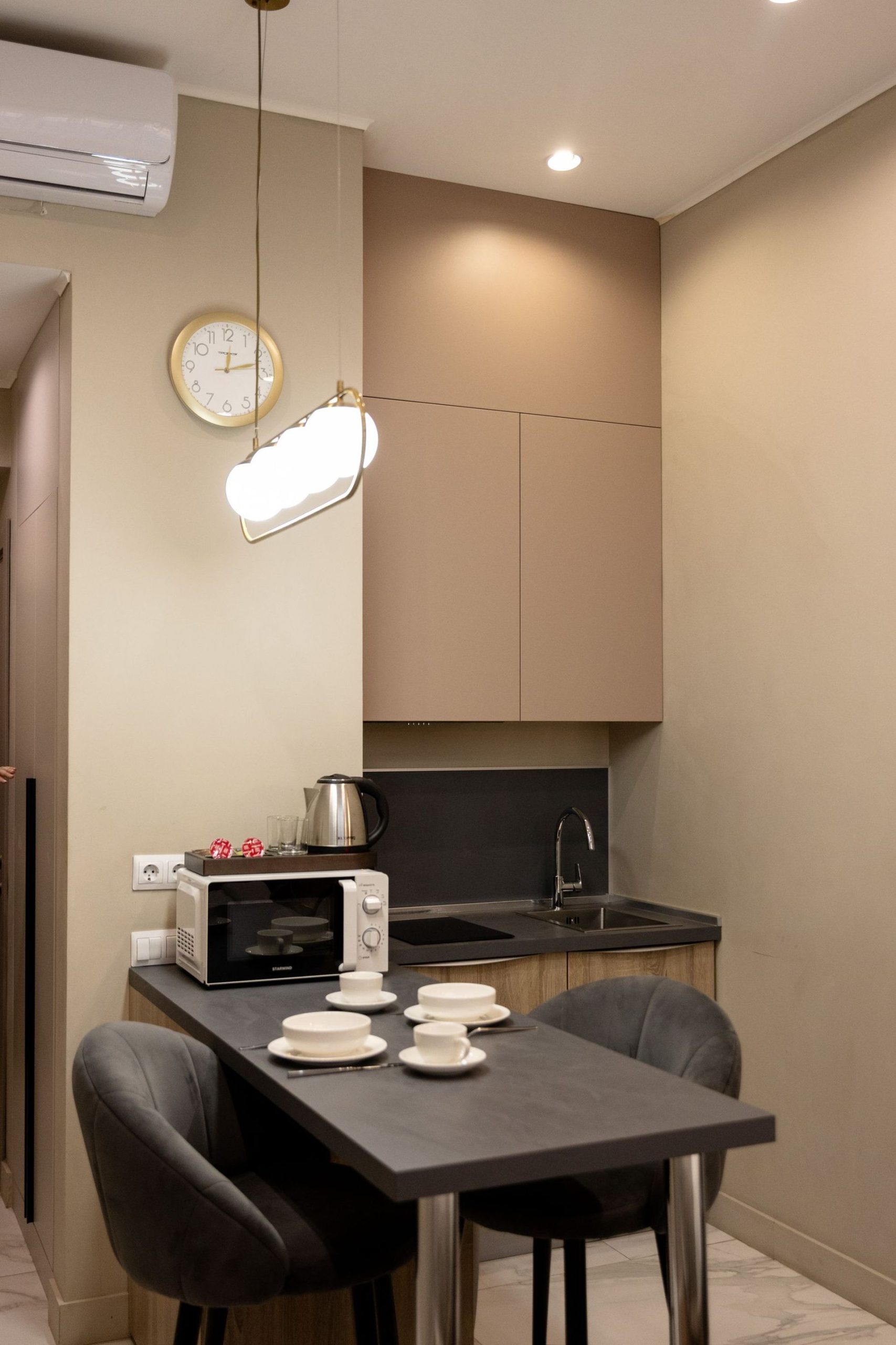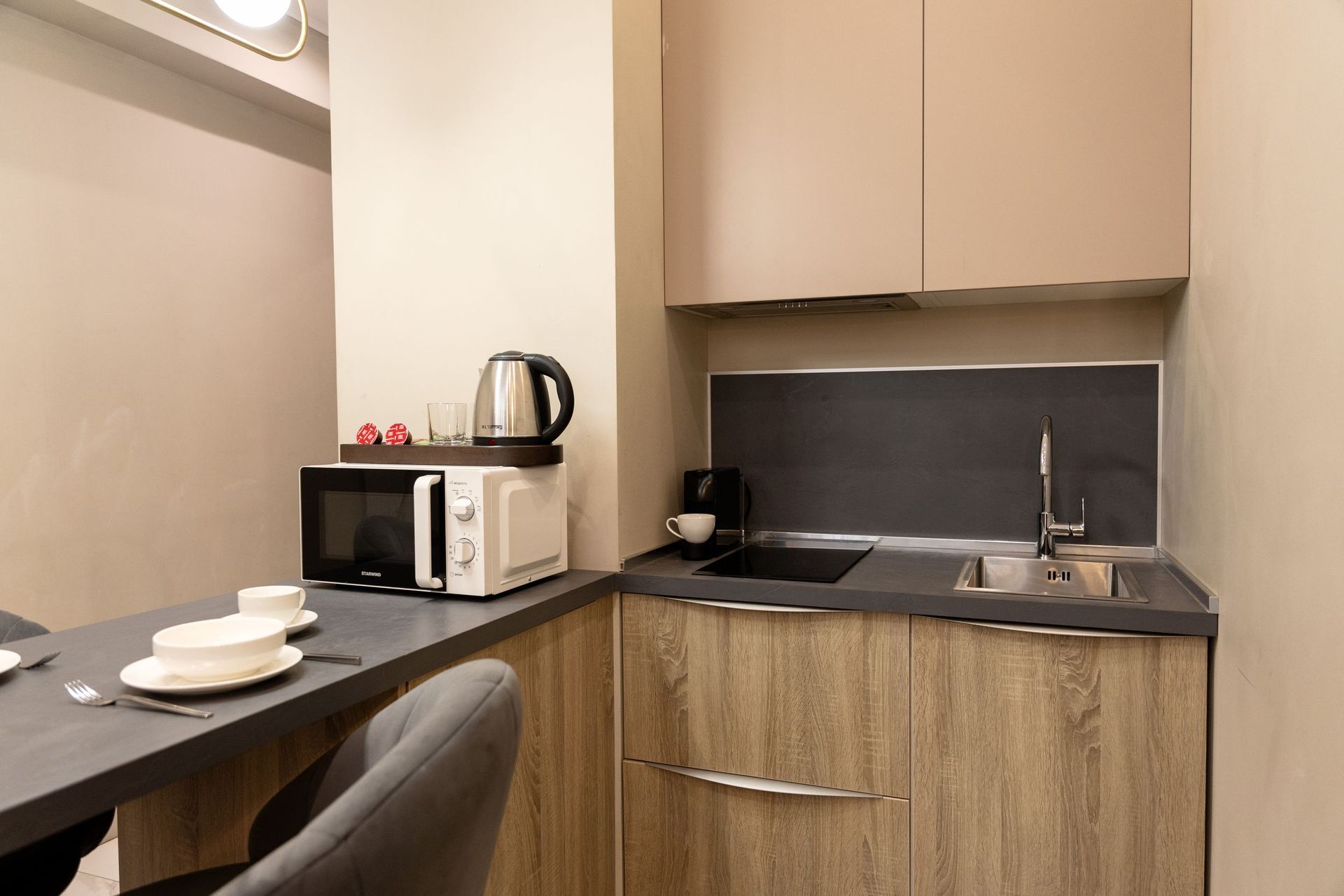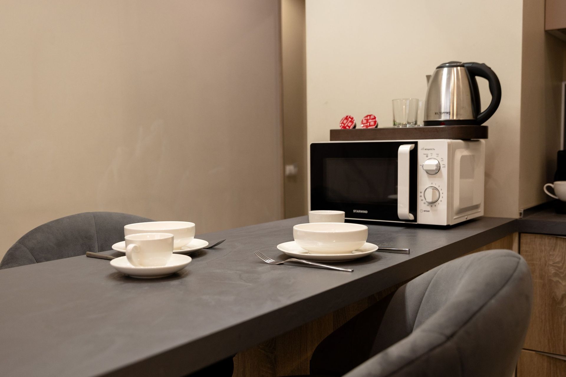Апартаменты двухместные в самом сердце Сочи на ул. Навагинская, оснащены всем необходимым для комфортного пребывания. В апартаментах удобная двуспальная кровать. Имеется всегда чистое и свежее постельное белье, мягкие махровые халаты и полотенца. Для любителей готовить есть оборудованная кухня с необходимой посудой и принадлежностями. Также, есть телевизор и WiFi.