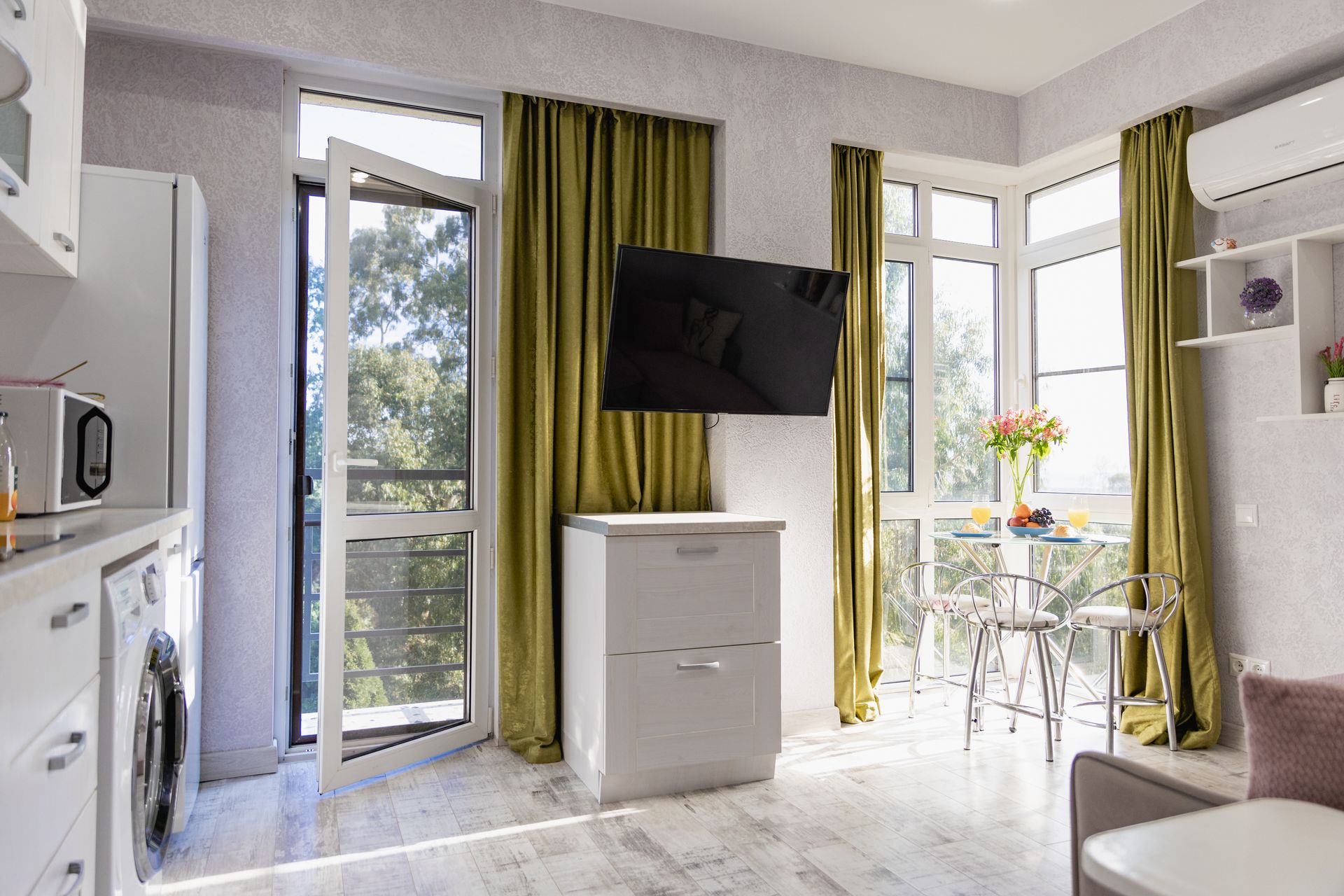 Чудесная студия в ЖК Сорренто Парк. Жилой комплекс расположен на территории Сириуса. До ближайшего пляжа 7-10 минут пешком. Очень удачное расположение дома, рядом кафе, столовые, магазины, аптека, и множество разных овощных и экскурсионных лавок. Рядом с домом есть парковка. В квартире есть все для комфортного проживания и отдыха) Имеется раскладной диван и раскладное кресло. Квартира комфортно может разместить 3-х гостей. А шикарный вид из окна и с балкона будет радовать глаз каждый раз)