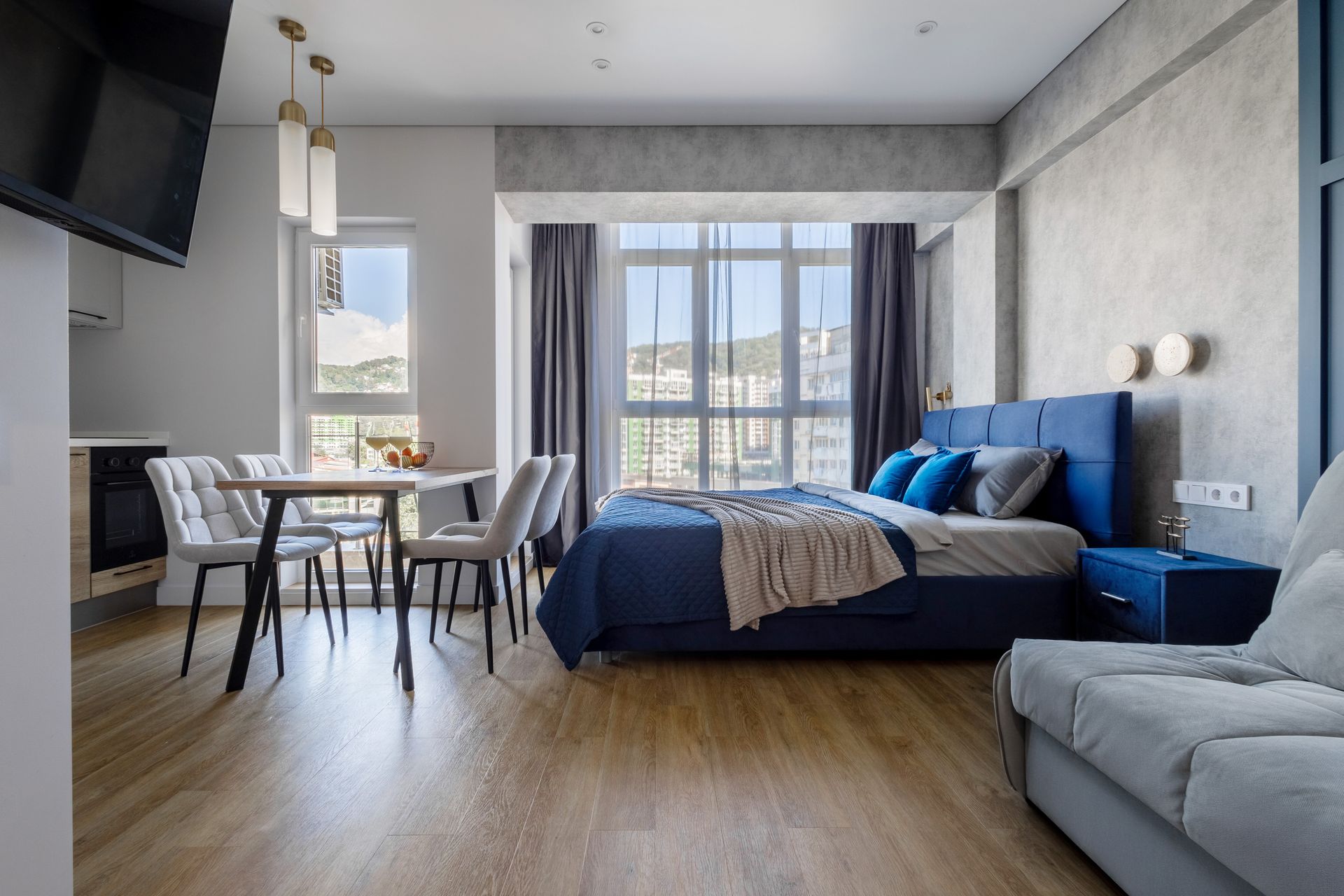 Стильная студия с дизайнерским ремонтом в ЖК Сен Тропе, район Кудепста. В квартире комфортно могут разместиться 4 гостя максимум. Имеется большая двуспальная кровать с ортопедическим матрасом, а также, очень удобный раскладной диван. Ценители комфорта отметят наше качественное постельное белье, мягкие махровые полотенца, набор приятной посуды, халаты и тапочки, зубные наборы. В квартире есть индукционна плита, холодильник, духовка, кофеварка. Большой телевизор, WiFi. И конечно, балкон с красивым видом на город и зелень никого не оставит равнодушным.