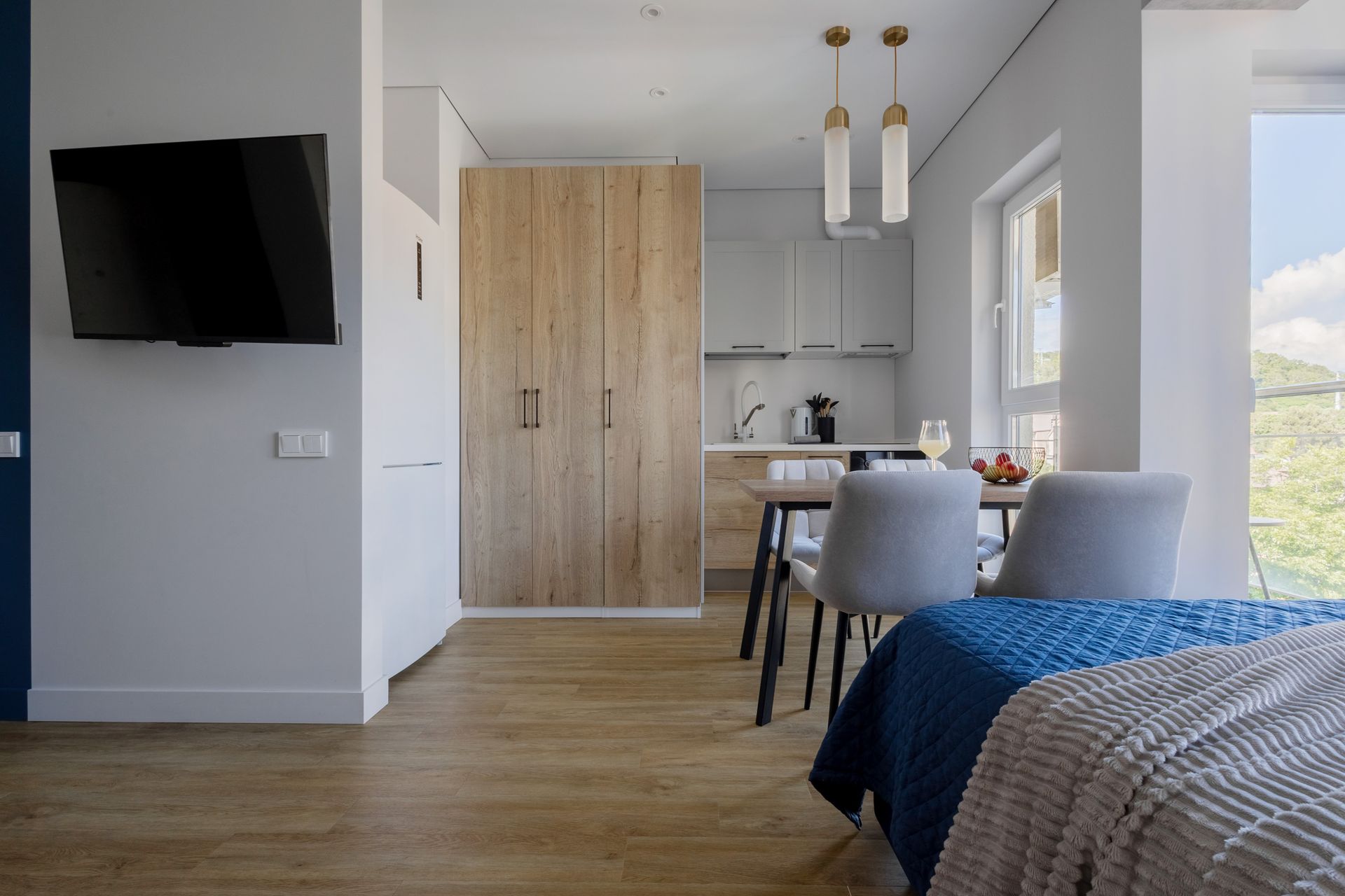 Стильная студия с дизайнерским ремонтом в ЖК Сен Тропе, район Кудепста. В квартире комфортно могут разместиться 4 гостя максимум. Имеется большая двуспальная кровать с ортопедическим матрасом, а также, очень удобный раскладной диван. Ценители комфорта отметят наше качественное постельное белье, мягкие махровые полотенца, набор приятной посуды, халаты и тапочки, зубные наборы. В квартире есть индукционна плита, холодильник, духовка, кофеварка. Большой телевизор, WiFi. И конечно, балкон с красивым видом на город и зелень никого не оставит равнодушным.